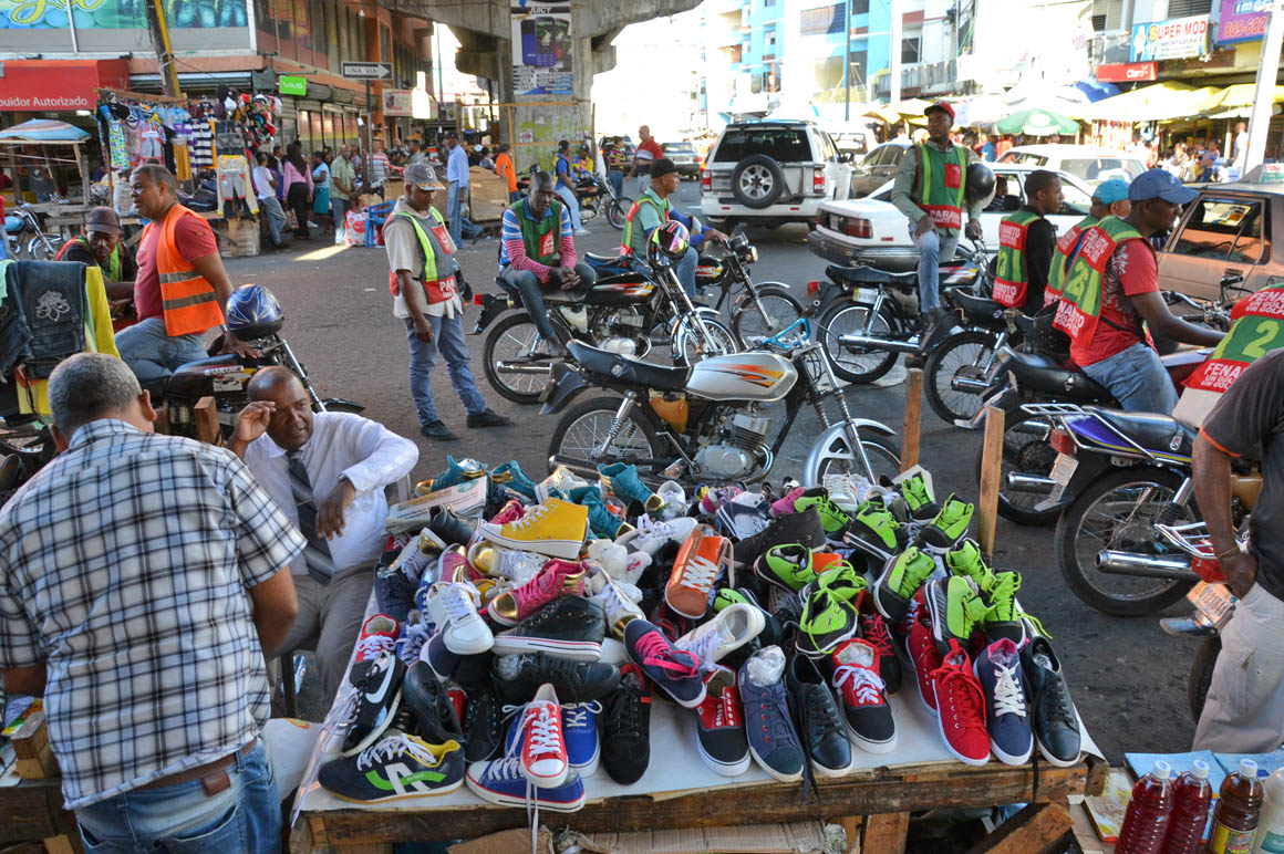Apenas caminamos una cuadra, dimos con Manuel de Jesús Spéncer, quien lleva 38 años vendiendo ropa, equipajes y calzados en la zona, y se nos identifica –carné en mano– como secretario general de la Asociación de Buhoneros del Distrito Nacional (Abudina).