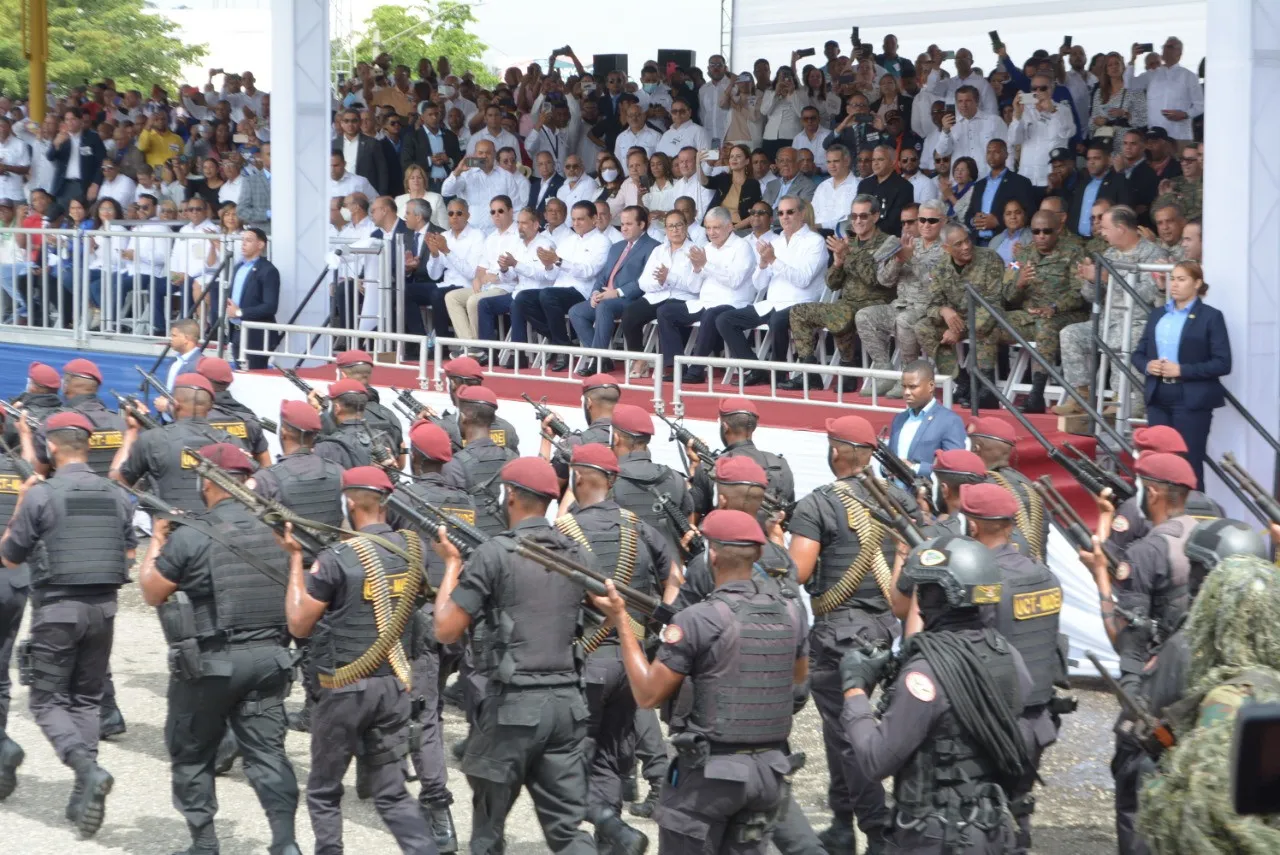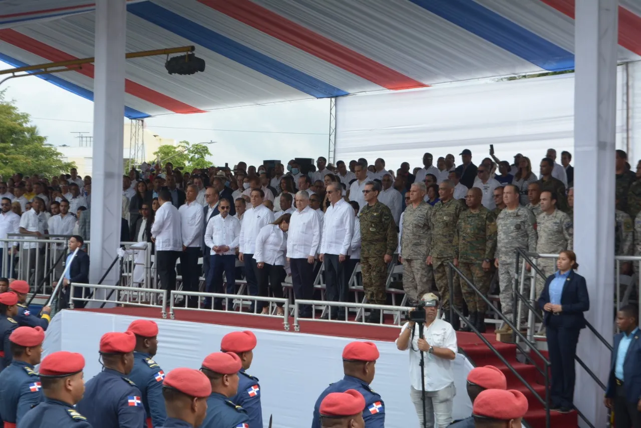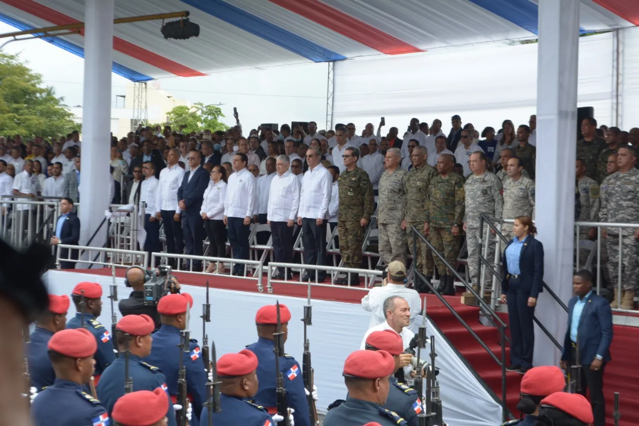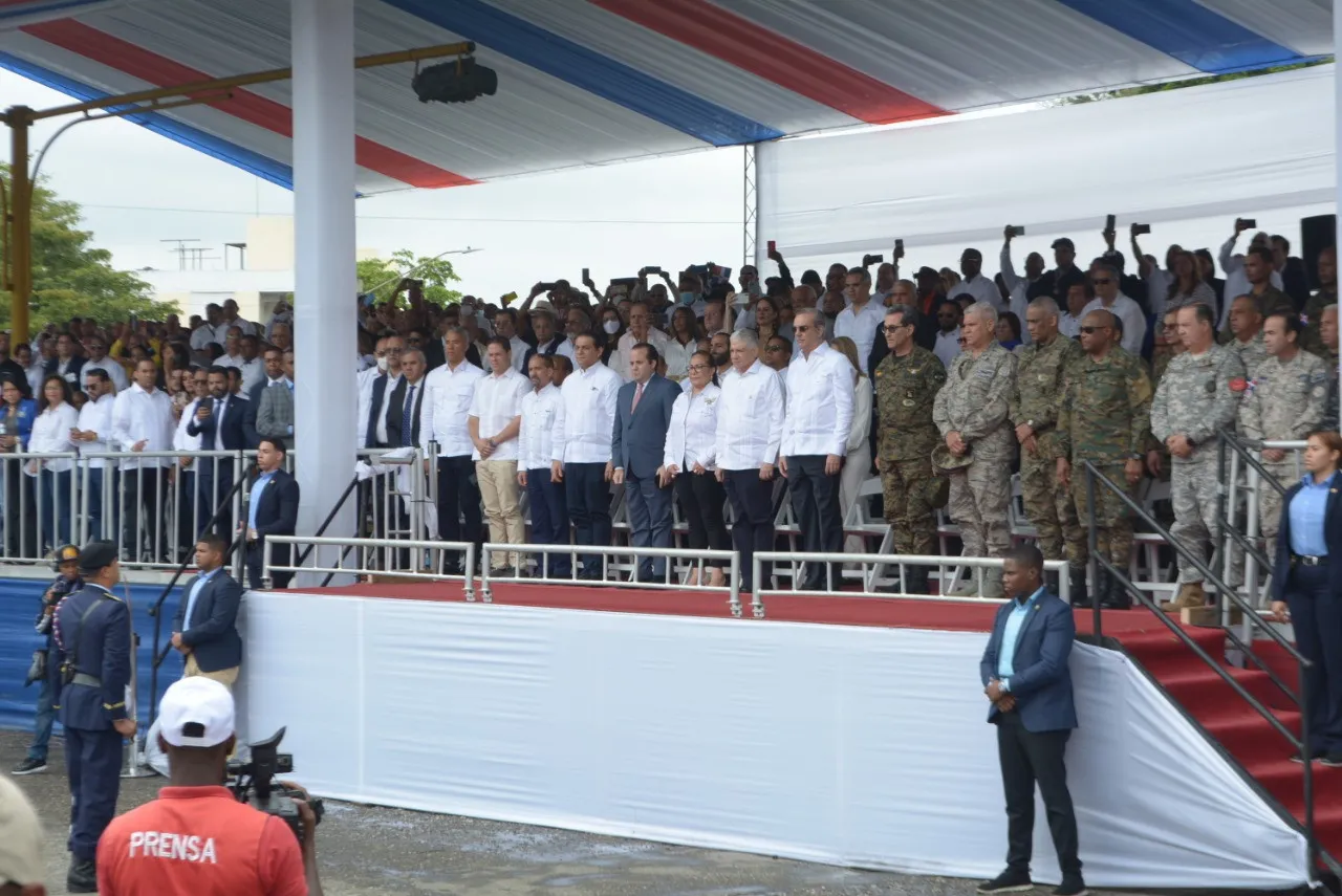 El presidente Abinader llegó a la tarima presidencial a las 10:04 minutos, para dar inicio a la parte protocolar del evento.