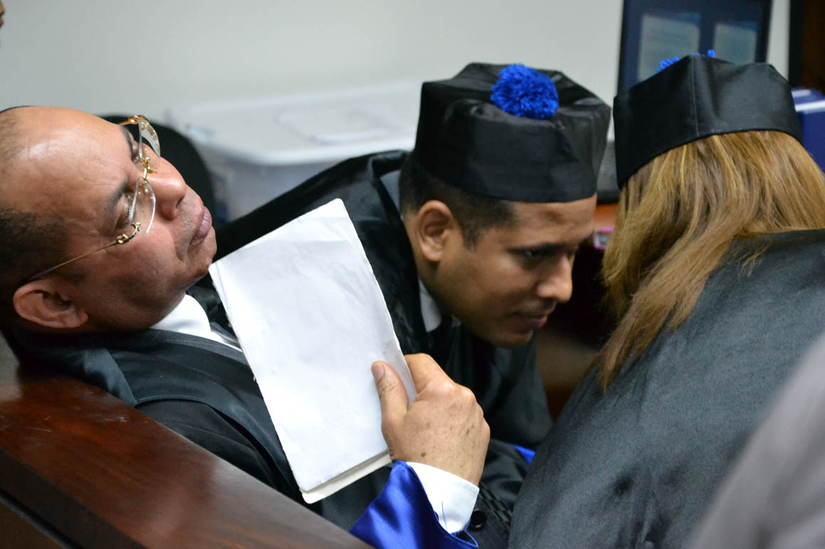 Tras cuatro horas de audiencia entre ponderaciones y argumentaciones, Moscoso Segarra anunció un receso de tres horas en los que determinará el rumbo de la Audiencia Preliminar que se lleva en la Segunda Sala de la Corte Penal de la Suprema.