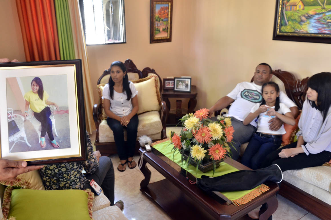 Su pelo negro oscuro y espeso cae sobre sus hombros. Como quien intenta extraer aliento de lo más profundo, expresa que su hija Jenny tenía una cabellera similar. La describe como su mano derecha en el hogar, ya que ella trabaja de 7 de la mañana a 4 de la tarde en una escuela, como maestra, y tiene otras dos hijas menores.