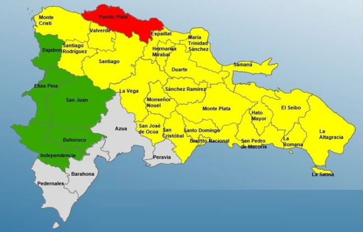 La alerta amarilla rige en prácticamente todo el territorio nacional (22 provincias) y la verde de menor peligrosidad solo en la zona céntrica del oeste (5 provincias), fronteriza con Haití.