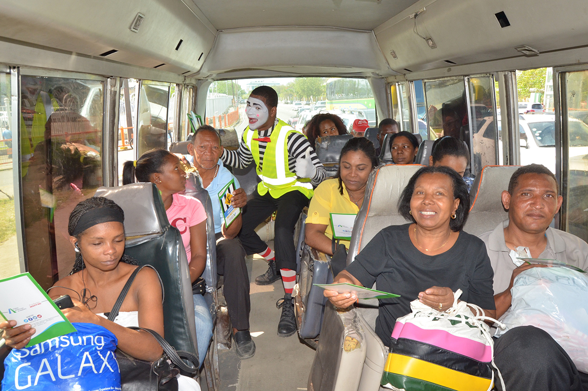 Para transmitir los mensajes alusivos a la prevención de accidentes, agentes de AMET sostienen pancartas en las cuales forman mensajes tales como “usa el cinturón de seguridad”, “respeta la luz roja del semáforo”, “no uses el celular si conduces”, “si manejas no tome”, “usa el casco protector” y “respeta el conductor”, entre otras.
