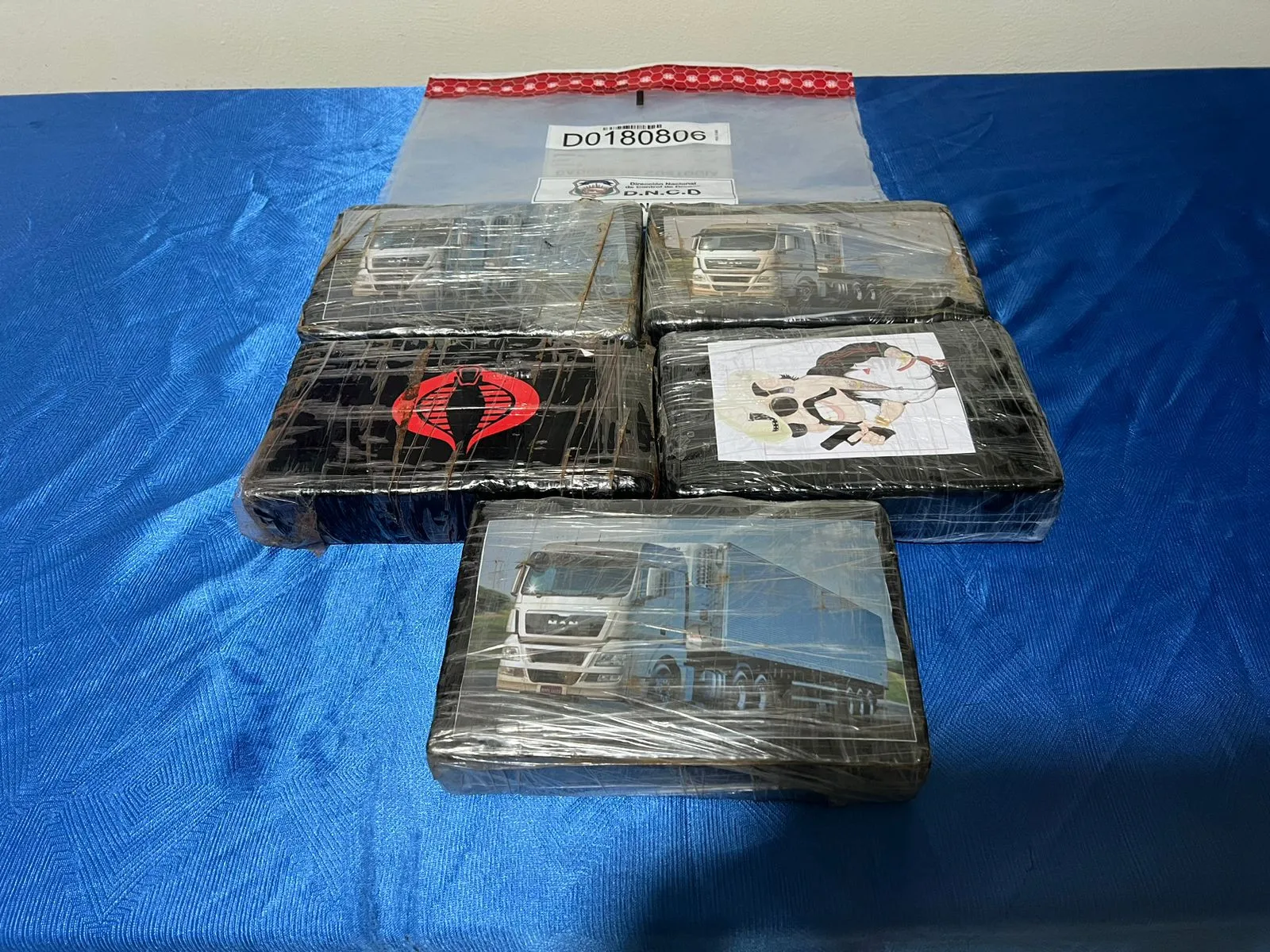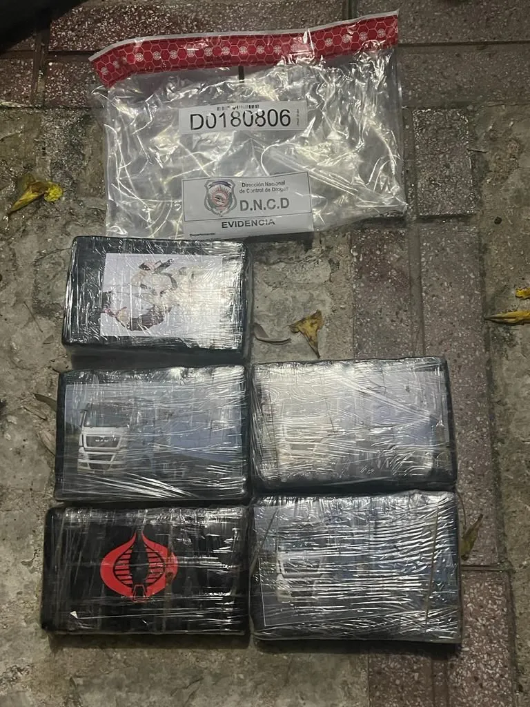 Posteriormente, los agentes acompañados de un fiscal, iniciaron el proceso de inspección, encontrando encaletados en el asiento trasero de vehículo, cinco paquetes de cocaína, con un peso de 5.15 kilogramos, según el análisis del Instituto Nacional de Ciencias Forenses (Inacif).