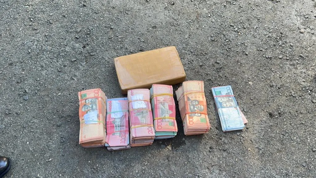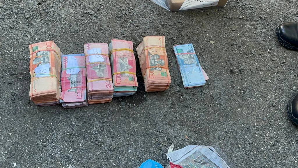 En presencia del fiscal se procedió abrir los compartimientos secretos, encontrando debajo del asiento delantero derecho, un paquete presumiblemente cocaína y la suma de RD$ 825.000.00 pesos dominicanos.