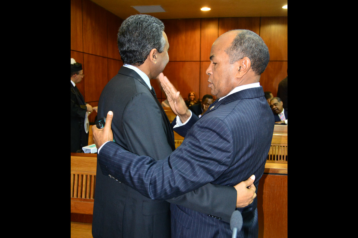 El senador acusado de 11 cargos de corrupción administrativa, fue respaldado por compañeros de partido y homólogos dominicanos quienes asistieron a la Suprema Corte de Justicia en apoyo a este.