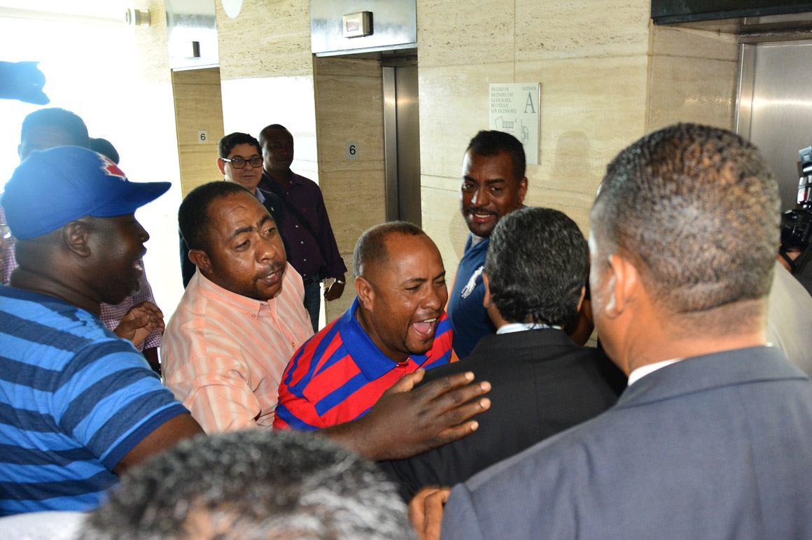 Sonia Mateo, Dionis Sánchez, Francisco Matos, Orlando Espinosa y Antonio Cruz, diputados y senadores, señalaron estar allí presentes en respaldo del es director de la Oficina de Ingenieros Supervisores de Obras del Estado (OISOE).