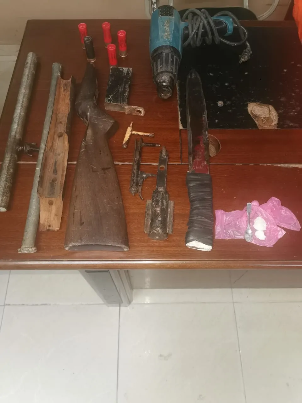 Asimismo, en el operativo también fue confiscada una escopeta de fabricación artesanal, con cinco cartuchos calibre 12 milímetros, y un arma cortopunzante. También dos motocicletas, un celular, un cigarrillo electrónico, un dólar y 2,500 pesos en efectivo.