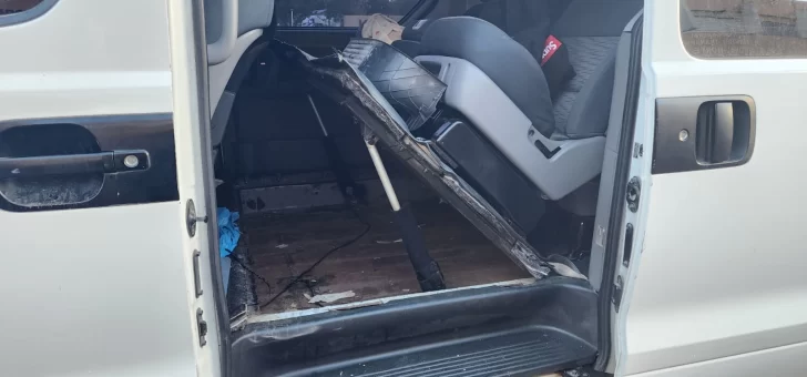 Los agentes y fiscales actuantes descubrieron debajo de los asientos del vehículo una caleta electrónica, cuyo compartimiento secreto al momento de abrirlo estaba vacío.