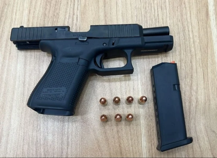 En el lugar se incautó un arma de fuego tipo pistola, marca Glock, modelo 19, 5ta generación, calibre 9mm, serie No. BURB179, de color negro, con su cargador y siete cápsulas del mismo calibre, sin ningún tipo de documentación.