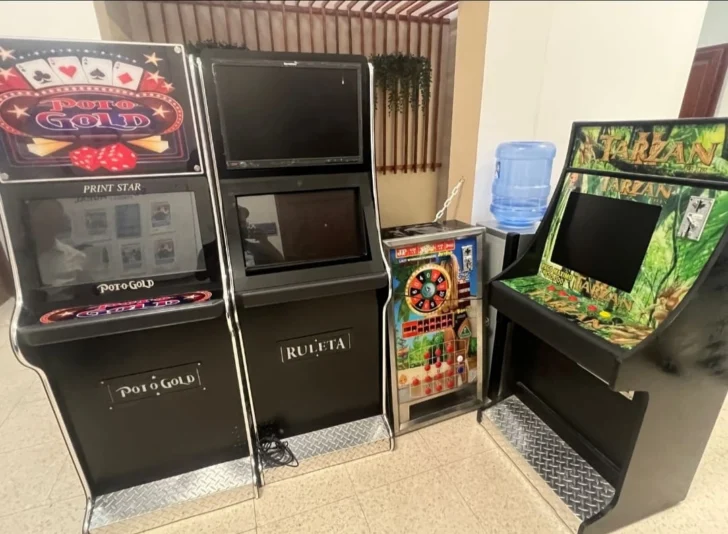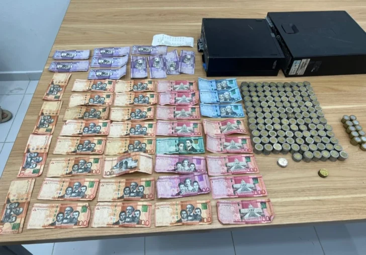 Posteriormente, se ejecutó la orden de allanamiento No. RAJ-2025-00213 en un edificio de color crema, ubicado en la calle principal del sector San Lorenzo, donde operaba una banca deportiva de manera ilegal, propiedad de Juan Esteban Cruz González, donde fueron halladas cuatro máquinas tragamonedas (tres digitales y una convencional), dos CPU, y la suma de RD$31,700.00 pesos en efectivo, en billetes y monedas, producto de las apuestas ilegales.