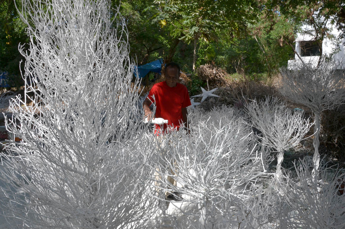 Reyes también posee su punto de venta y construcción en la avenida Winston Churchil, tiene varios empleados que lo respaldan a la hora de elaborar las decoraciones que se han convertido en parte de la tradición dominicana.