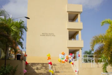 En infraestructura, Emma Balaguer mantiene dos obras: techado de la cancha en fase final y construcción de cinco aulas en la parte frontal.