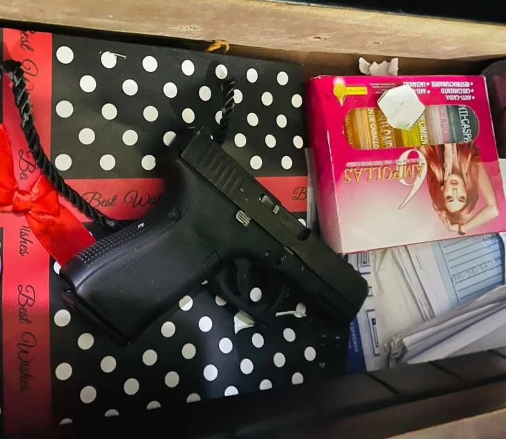 Durante un allanamiento efectuado en un edificio ubicado en la calle sin nombre, casi esquina Antonio Duvergé, proyecto La Matica, fueron apresados Rafael Abreu (a) Pupilo, de 51 años, y Denny Alberto Mota (a) Chulito, de 39, a quienes les incautaron una pistola marca Glock 19, calibre 9mm, No. BMTD695, con su cargador y tres cápsulas, así como también un revólver marca Taurus, No. F4596, las cuales portaban de manera ilegal.