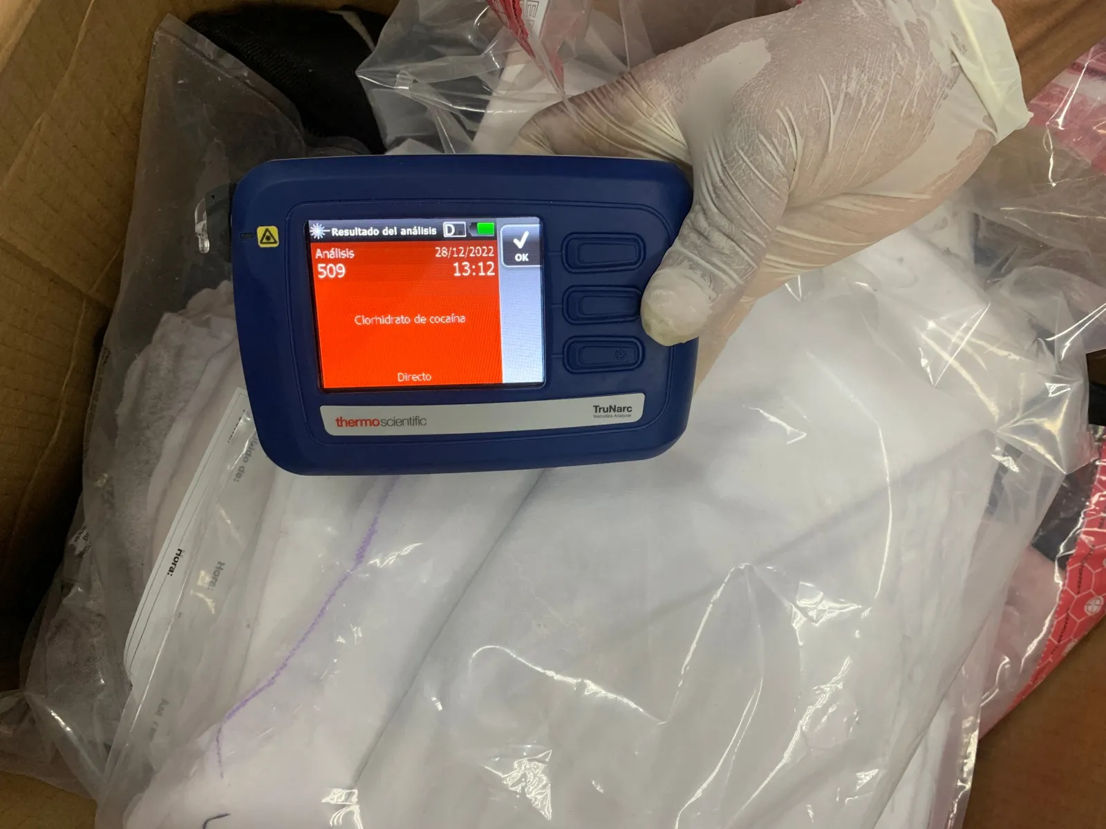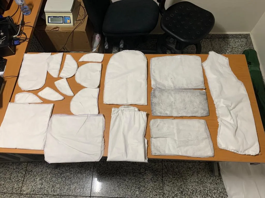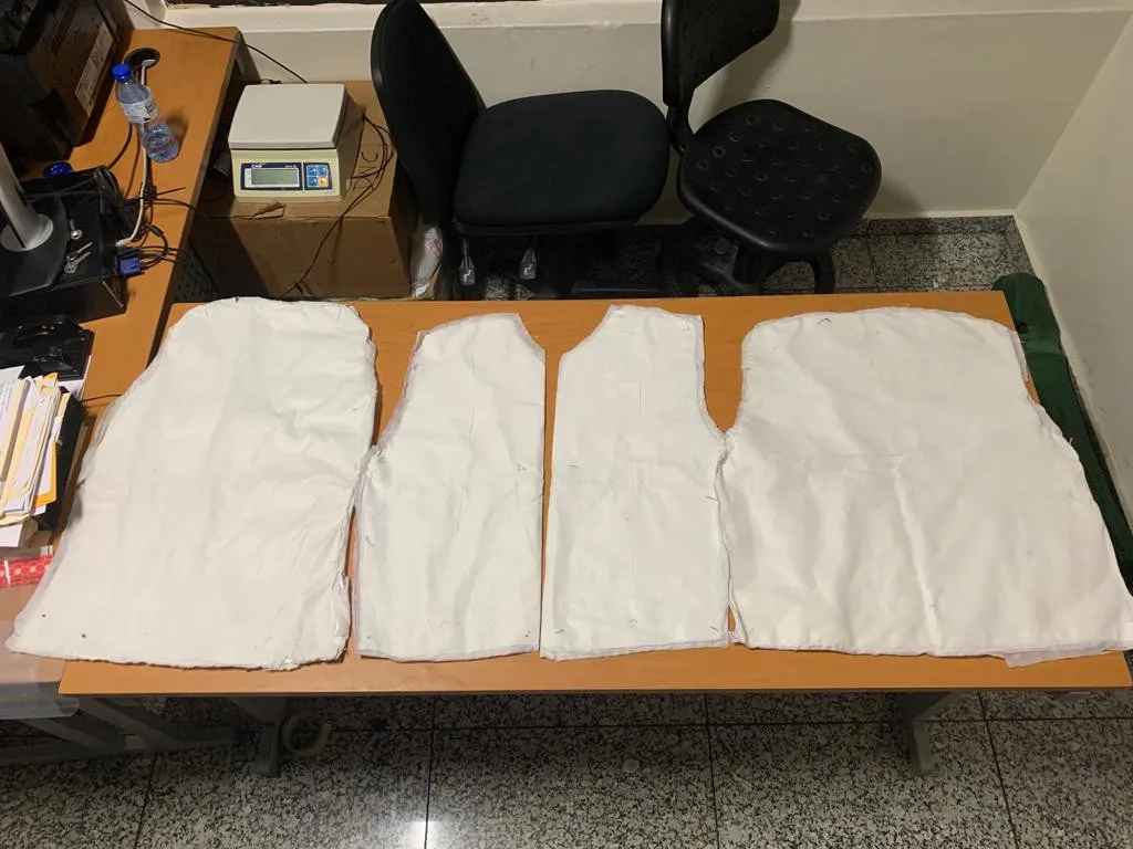 En presencia de un fiscal adjunto, se procedió a abrir la caja, encontrando en su interior, una mochila con cuatro láminas, un abrigo tipo militar con 13, un bulto tipo mariconera con tres y un cojín con una lámina, para un total de 21, con un peso total de 2.9 kilogramos de cocaína, según el Instituto Nacional de Ciencias Forenses (Inacif).