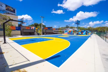 El espacio cuenta con dos canchas híbridas para baloncesto y voleibol, dos canchas de pádel y un sendero de caminata de 200 metros.