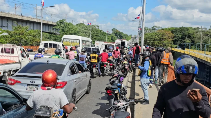 Para mitigar el congestionamiento vehicular en Villa Mella, los agentes de tránsito habilitaron un contraflujo mientras persisten las labores de emergencia en el puente.