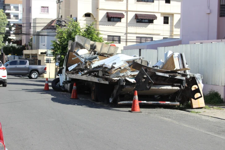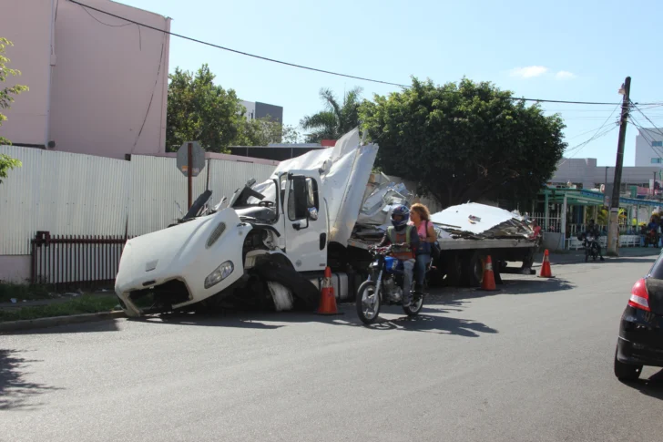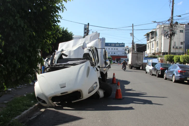 El camión que la madruga del domingo se precipitó al paso a desnivel de la avenida 27 de Febrero, entre las calles Fernando Defilló y Carmen Mendoza tras un accidente de tránsito, se encuentra detenido en la calle Bohechío, del ensanche Quisqueya, causando preocupación a los residentes del sector.