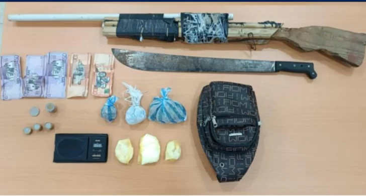 Al momento de su apresamiento le fue incautado un machete, una arma de fabricación artesanal (chagón), una motocicleta, marca Baja Platinum, negro; un bolso con una balanza, sustancias controladas como marihuana y cocaína, así como también dinero en efectivo.
