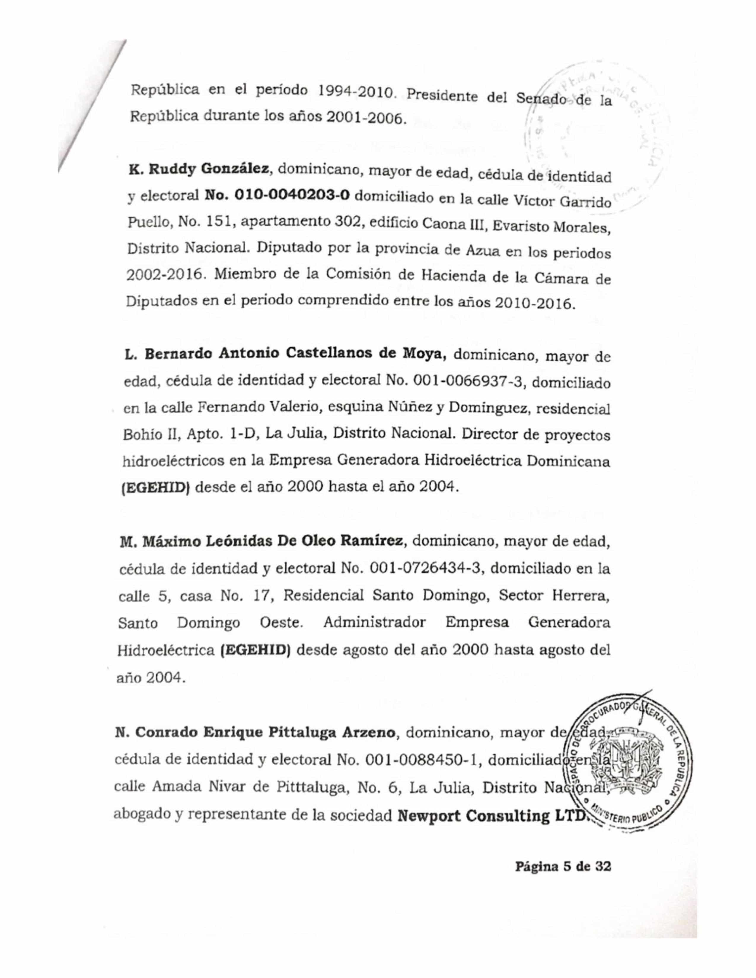 A continuación, la individualización de los imputados en la solicitud, en la que no aparece el nombre de Pittaluuga hijo.