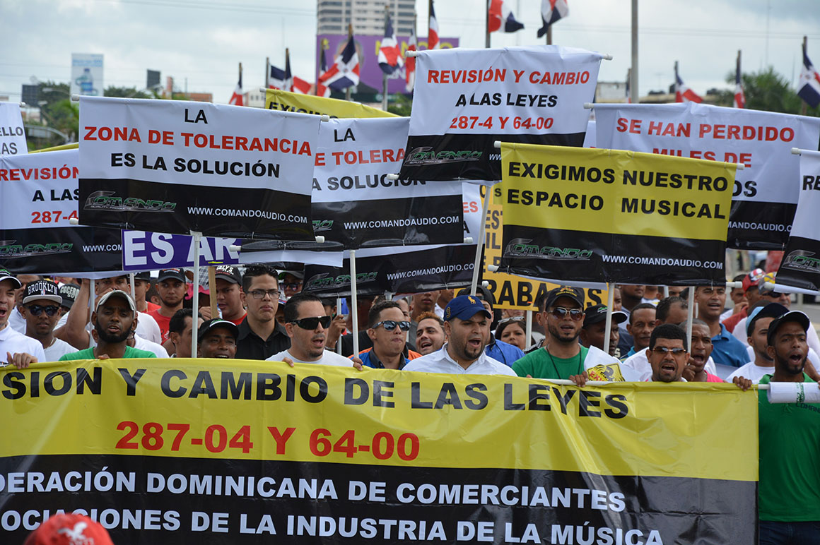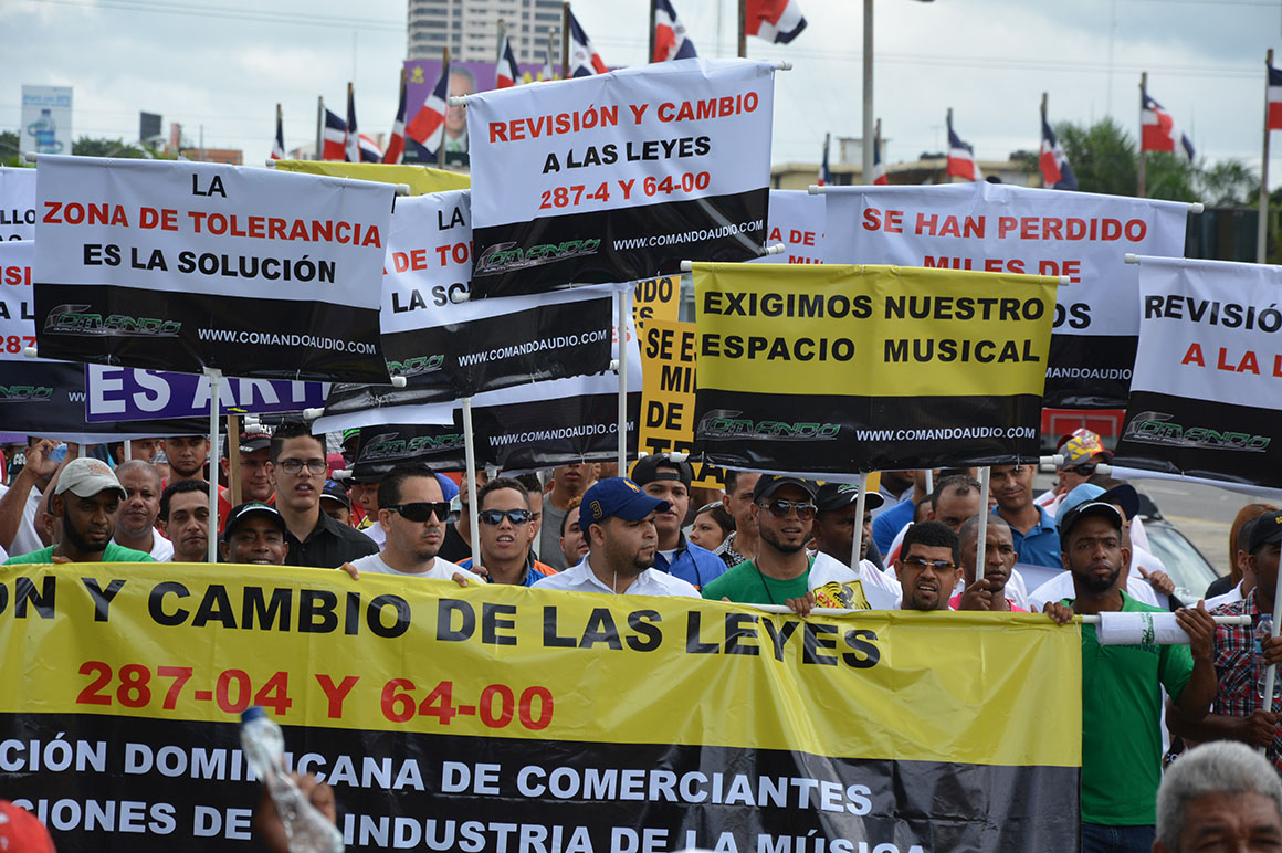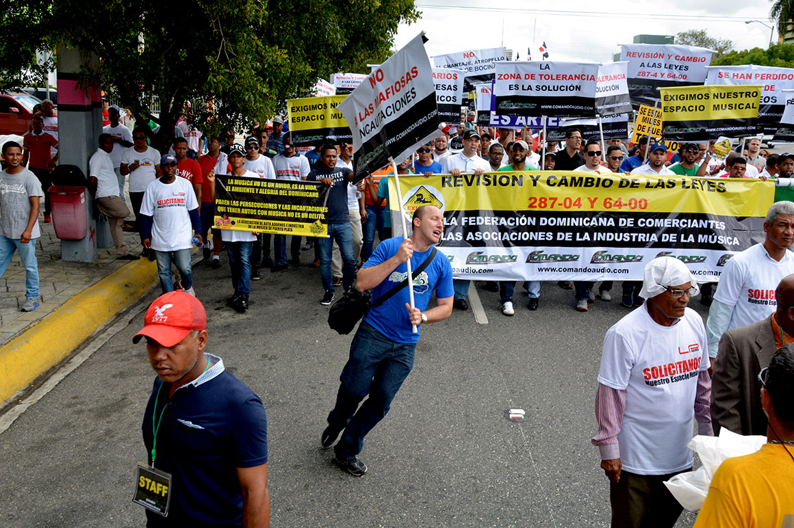 SANTO DOMINGO, República Dominicana.- La Federación Dominicana de Comerciantes marchó este lunes 6 de julio en reclamó de que se creen espacios de tolerancia musical y se detengan las incautaciones de equipos de sonido sin previa disposición de un juez.