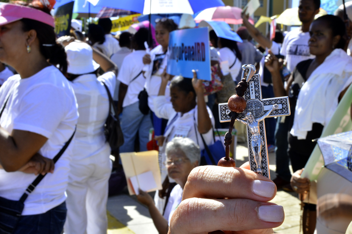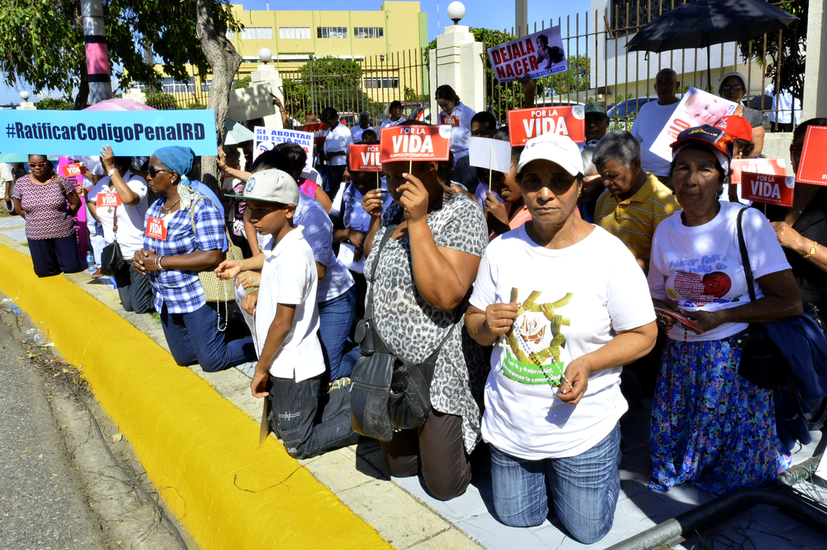 SANTO DOMINGO, República Dominicana.- Entre oraciones y cánticos cristianos, cientos de feligreses, curas y líderes de distintas denominaciones religiosas se congregaron la mañana de este martes 09, frente al Palacio del Congreso Nacional, en reclamo de que los senadores y diputados voten contra las observaciones al Código Penal que hizo el presidente Danilo Medina.