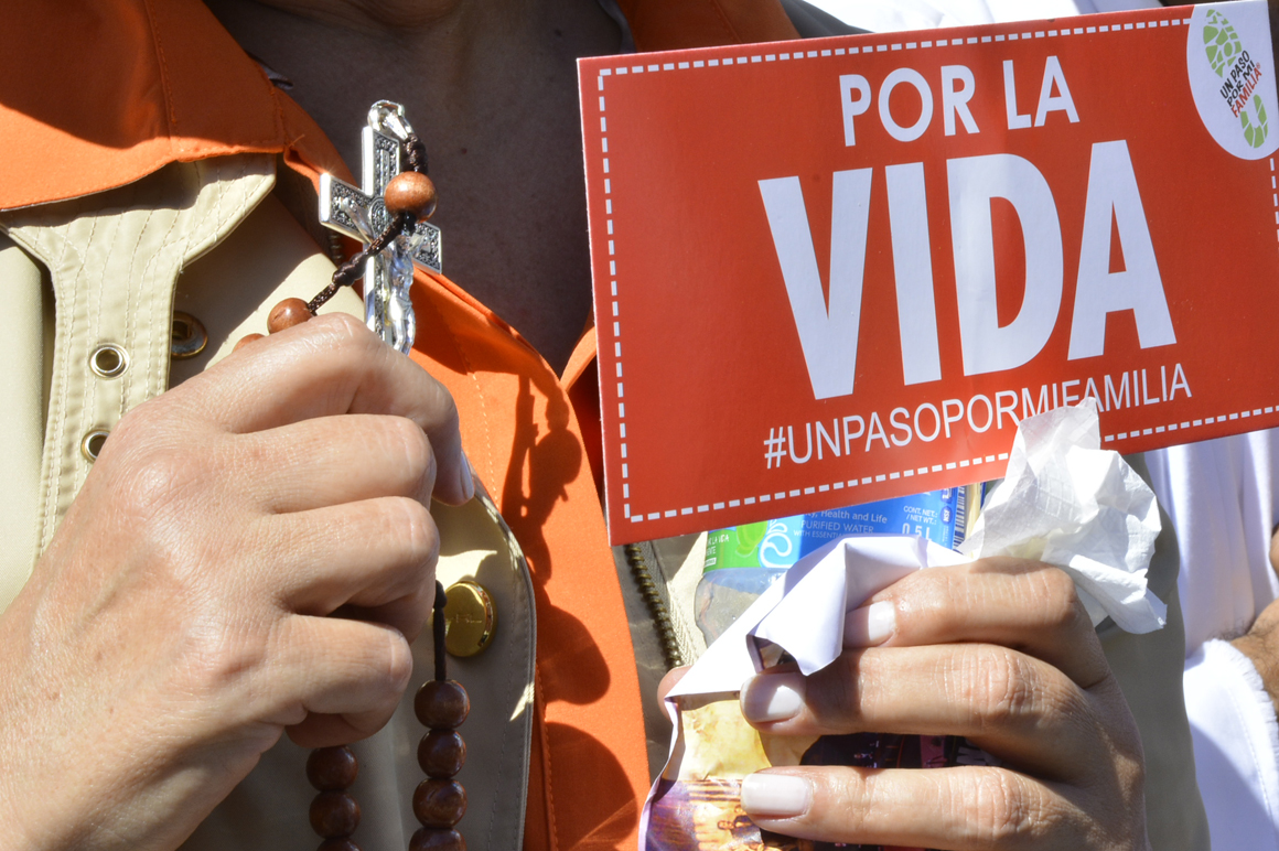 Entre los líderes religiosos que acudieron a exigir que se mantenga la prohibición sin situaciones atenuantes del aborto estuvo el sacerdote Rogelio Cruz, quien resaltó la unidad de acción de evangélicos y católicos.