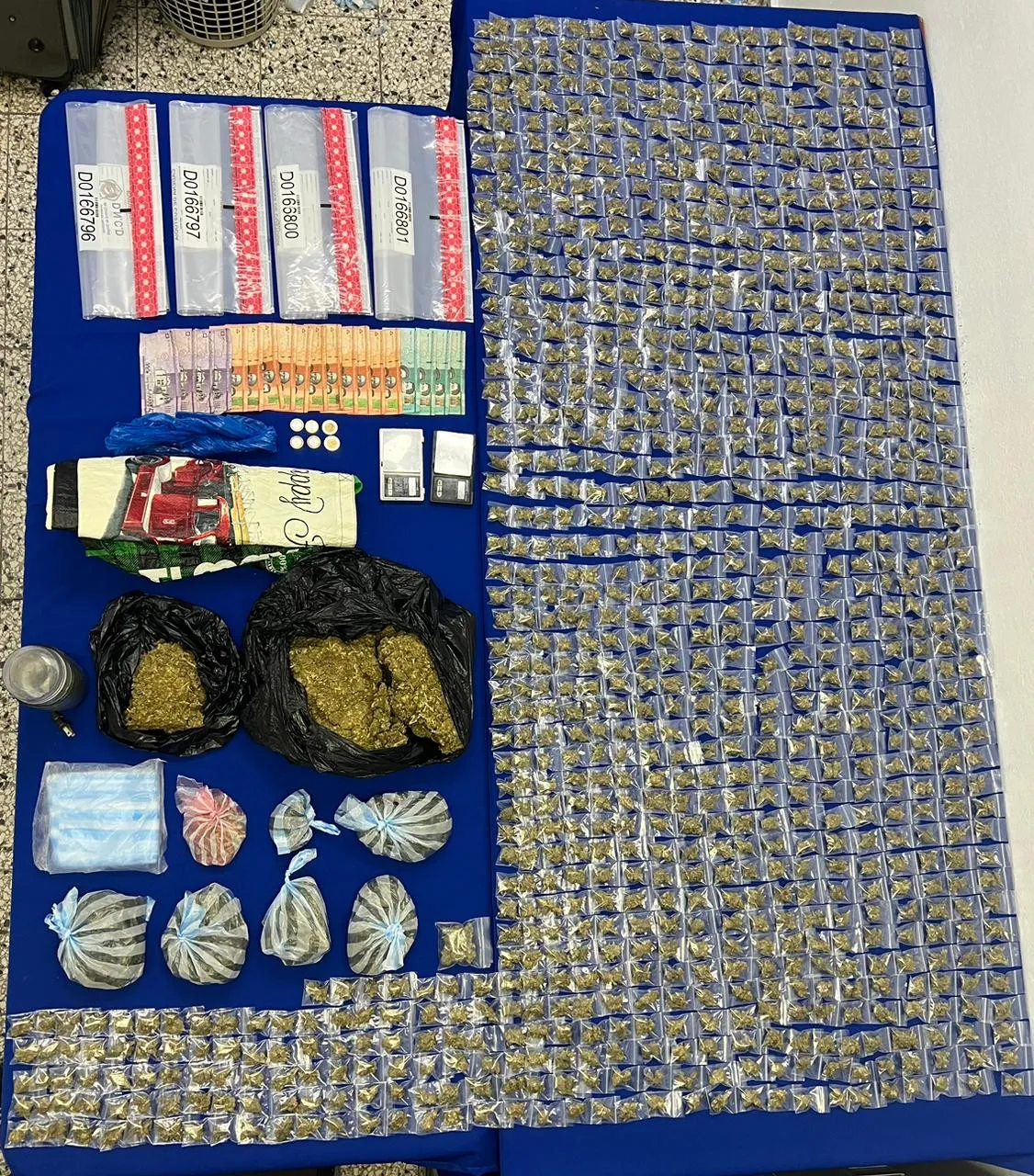 Luego, las autoridades se movilizaron a la calle 12 A, del Residencial los Prados II, del sector los Jardines del Norte, donde realizaron otra intervención legal. Aquí apresaron a un hombre, que se presume es el cabecilla de la red, a quien le incautaron otros 33, 102 gramos de marihuana, RD$ 71, 000 pesos , una pistola con dos cargadores y varias cápsulas, una yipeta, entre otras evidencias.