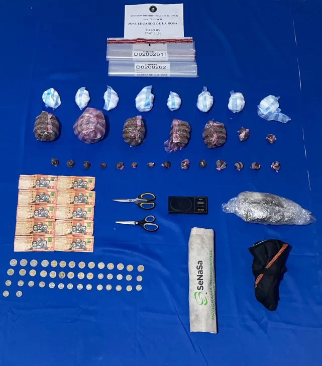 Asimismo, confiscaron 07 celulares, 02 balanzas, tijeras, una motocicleta, una cadena, un reloj, RD $11, 705 pesos dominicanos y otras evidencias.