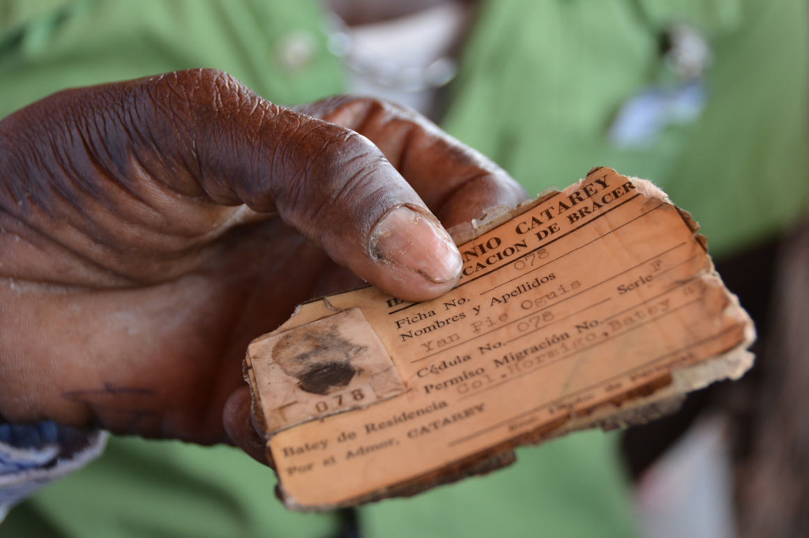 Yan Pie muestra su única identificación que prueba es cañero desde el año 1972 cuando fue llevado desde la frontera de Haití y República Dominicana hacia la región Este del país.