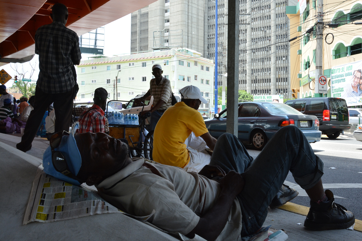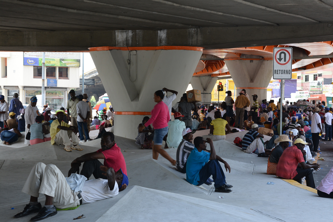 Miles de personas esperan acostadas en pedazos de cartones bajo la sombra que proporciona la enorme estructura vial erigida justo en la esquina superior del Huacal, uno de los tantos lugares que ejecuta el Plan de Regularización de Extranjeros.