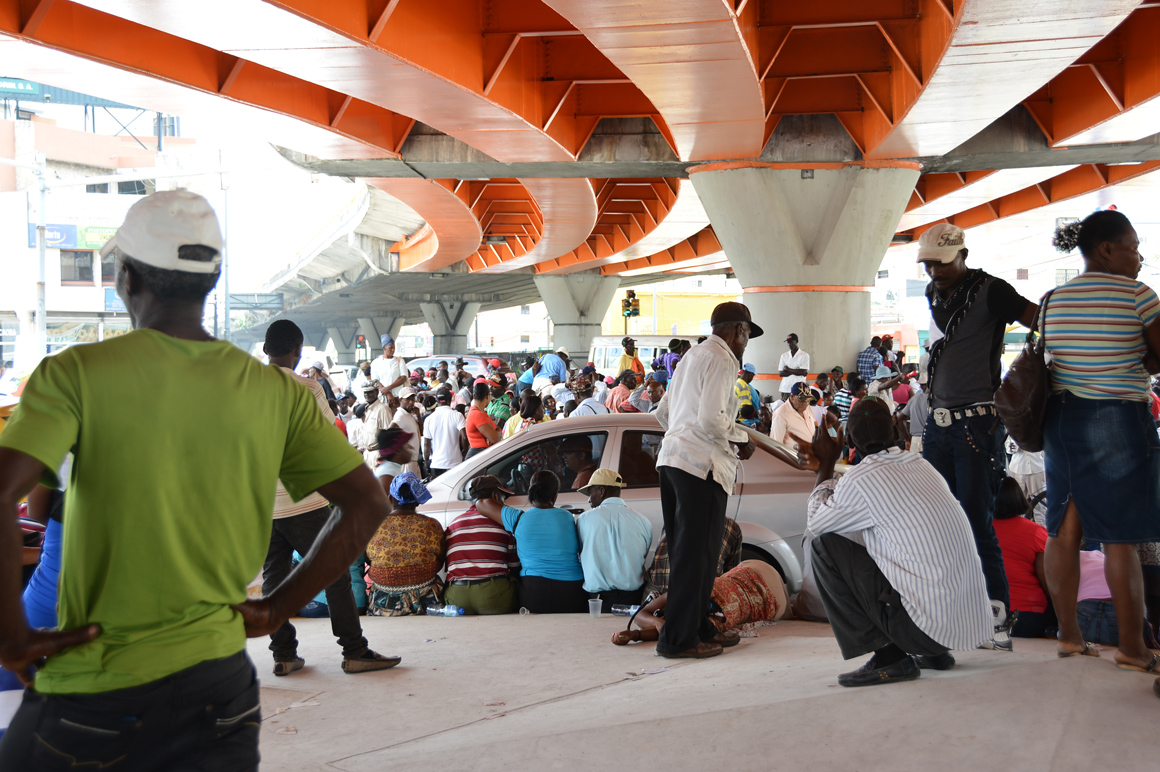Los rostros muestran el cansancio acumulado con las horas de insomnio, hambre, calor y sed. Ancianos, adultos, jóvenes y niños, unos sentados en el borde y otros en el extremo del triangulo de los muros levantados bajo el elevado. El lugar se ha tornado intransitable, tanto para peatones como para vehiculos.