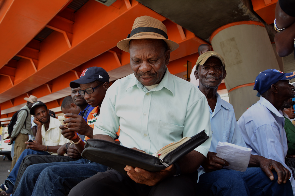 Pie es rodeado por varios hombres más jóvenes que dicen ser hijos de esos cañeros haitianos a los que se les dio una ficha de identificación que acreditarán el servicio que prestaban.