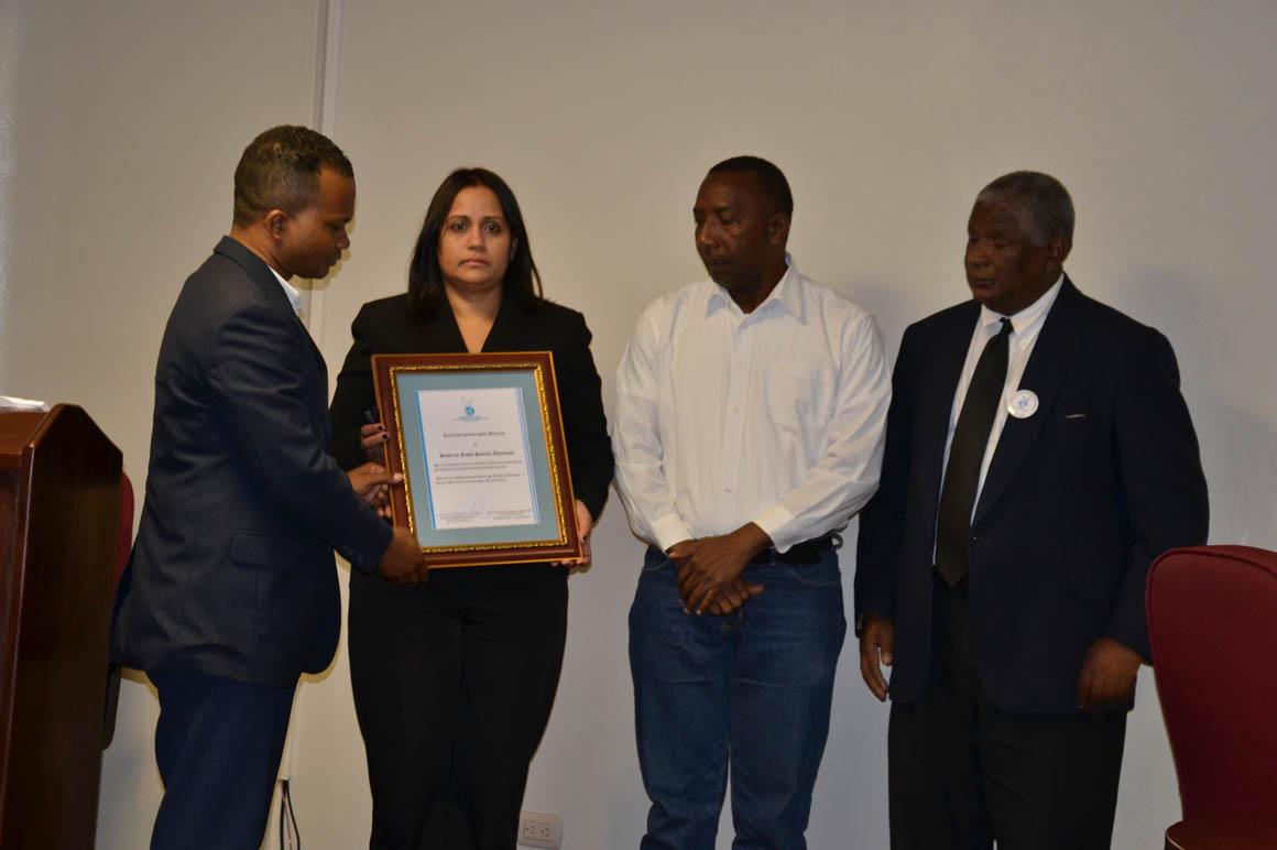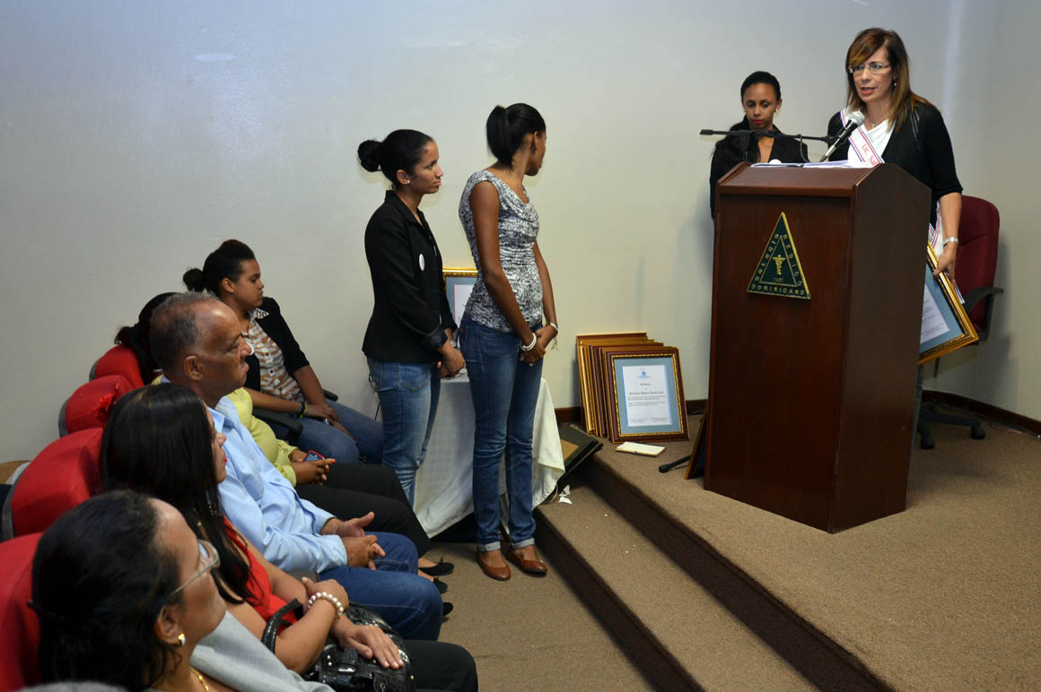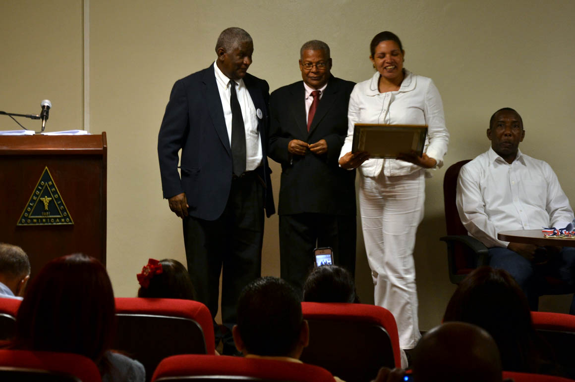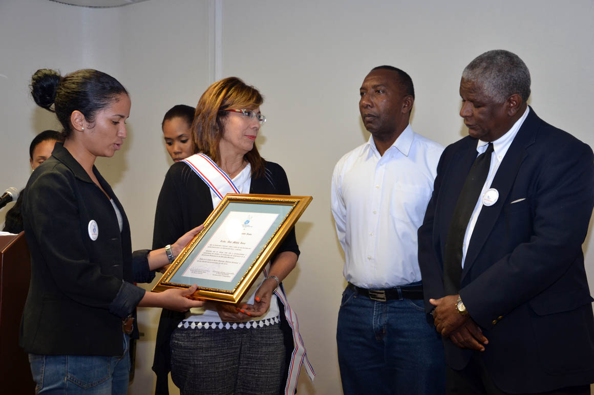 Luego de sus pronunciamientos, Manuel María Mercedes procedió a entregar el primer reconocimiento de los 20 galardones y medallas de honor que entregó el CMDH a la periodista Ana Mitila Lora, miembra del telediario Uno + Uno.