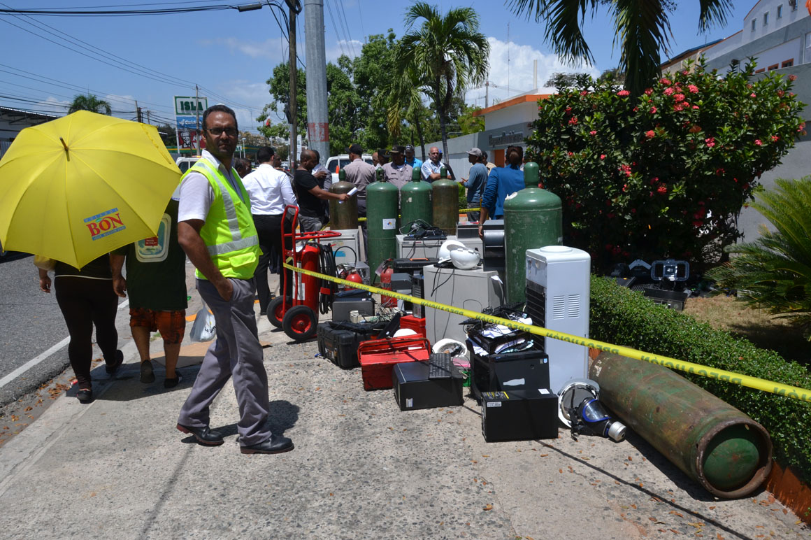 Objetos de trabajo de la empresa Bepensa Dominicana se encuentran afuera de las instalaciones hasta que las partes lleguen a un acuerdo, luego que 50 hombres penetraran a la edificación y sacaran a la fuerza a los empleados de la empresa.