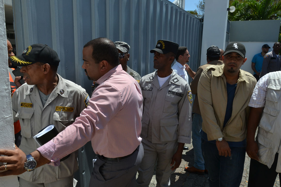 Luego de discusiones esporádicas durante dos horas, el alguacil ordinario del Primer Juzgado de Instrucción del Distrito Nacional, Yamaicol Tejeda Puello, entró a las instalaciones nueva vez junto a miembros de ambas partes.