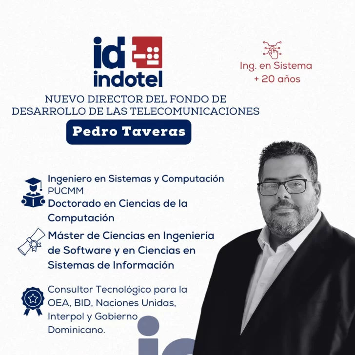 Asimismo, fue designado nuevo director del Fondo de Desarrollo de las Telecomunicaciones, Pedro Taveras, quien es ingeniero en Sistema y Computación, egresado de la Pontificia Universidad Católica Madre y Maestra (PUCMM).