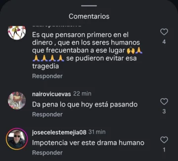 “Da mucha pena todas esas personas que murieron, pero lamentablemente nunca se le hará justicia porque la de este país está podrida. Solo hay justicia para el pobre.”
