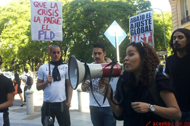 “No a la imposición del paquetazo que eleva el itbis (Impuesto a las Transferencias de Bienes Industrializados) de 16 a 18 por ciento” gritaban los dominicanos” entre pancartas, consignas y cantos y las miradas de asombro de varios transeúntes argentinos que se acercaban a preguntar de qué se trataba la protesta o que significaba el PLD.