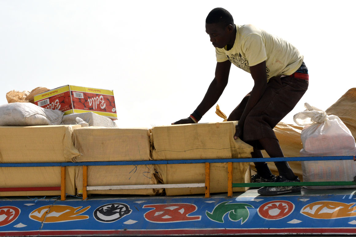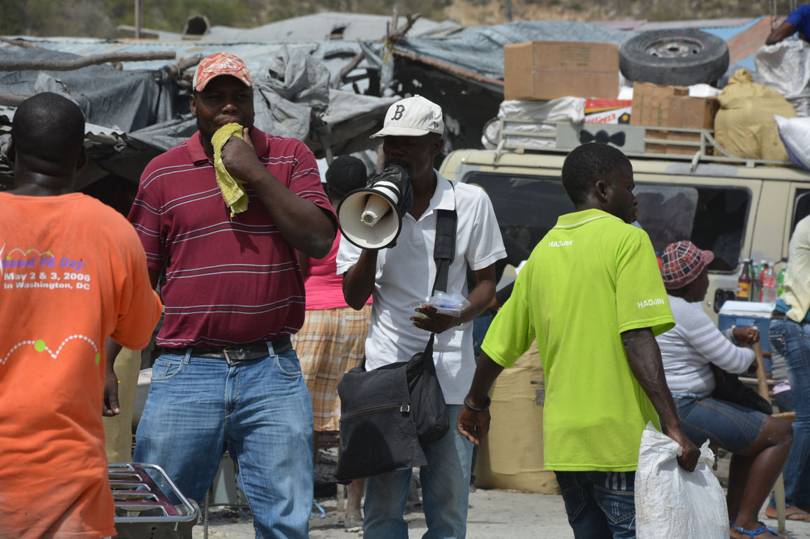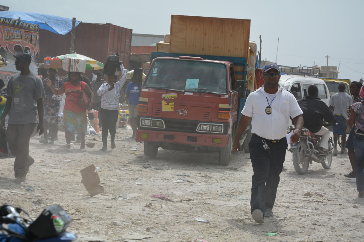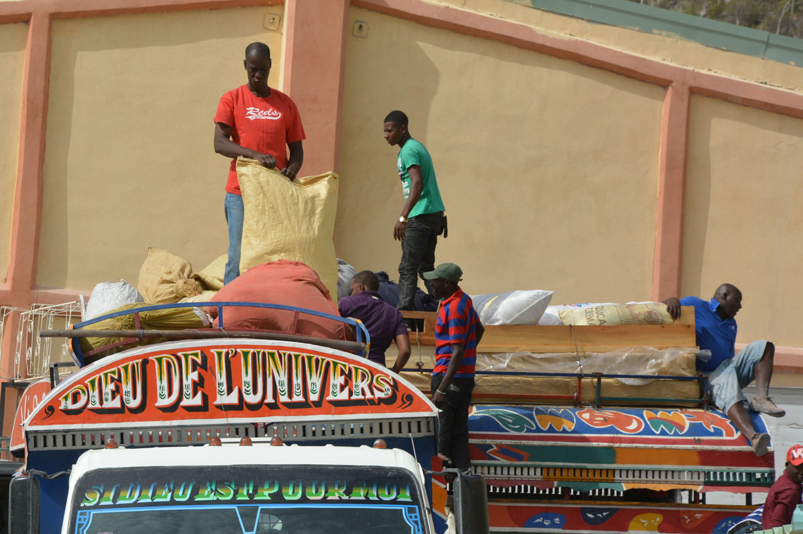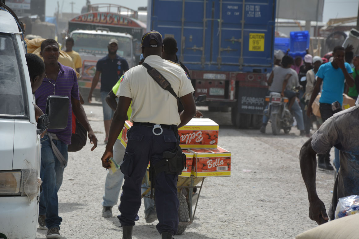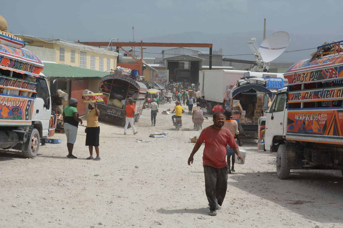 Algunas mujeres se cubren los rostros y otras el pelo, previniendo la polvareda que levantan los vehículos al transitar, sobre todo los camiones,por la angosta vía. Al llegar al punto de inspección antes de entrar a territorio haitiano a cada conductor le espera una larga fila.
