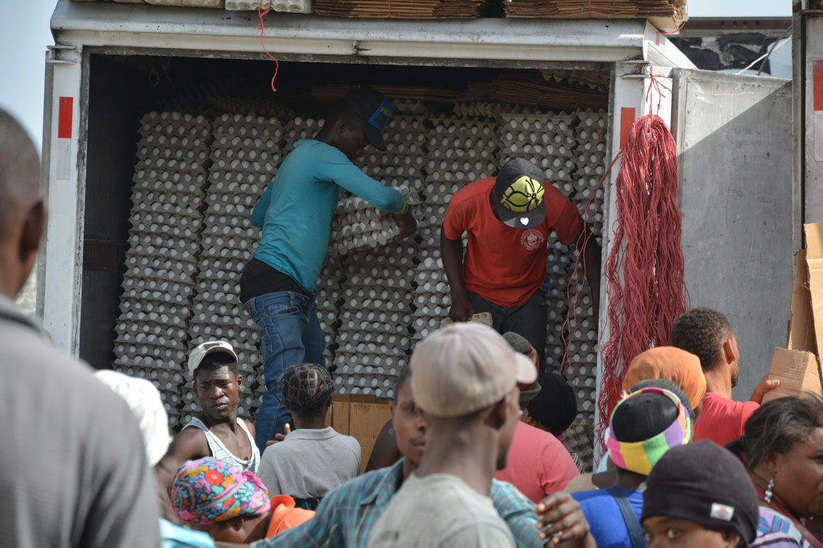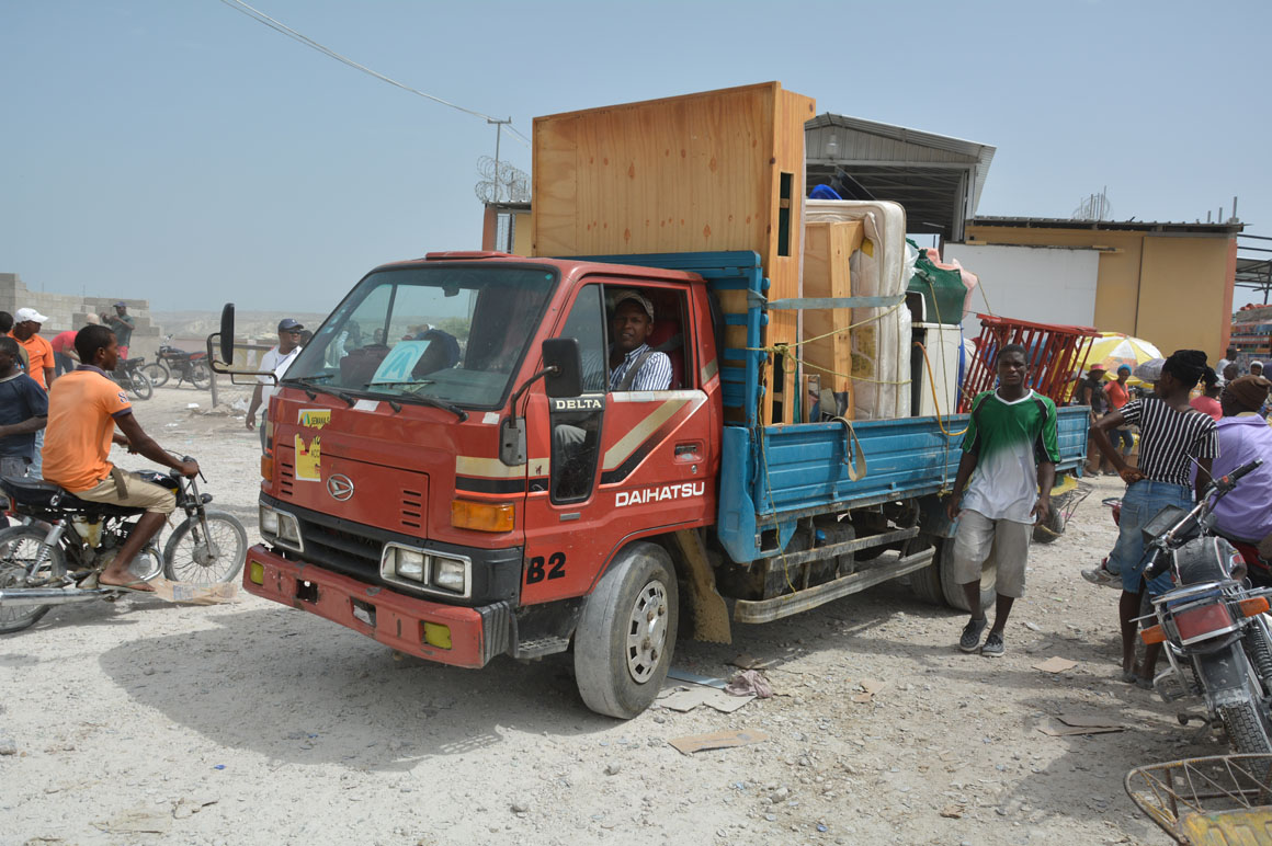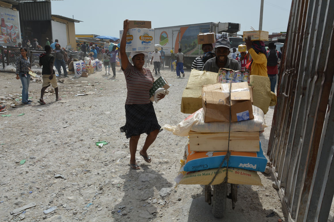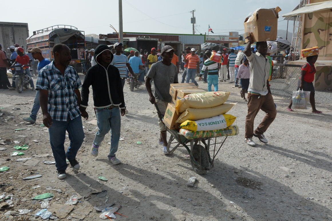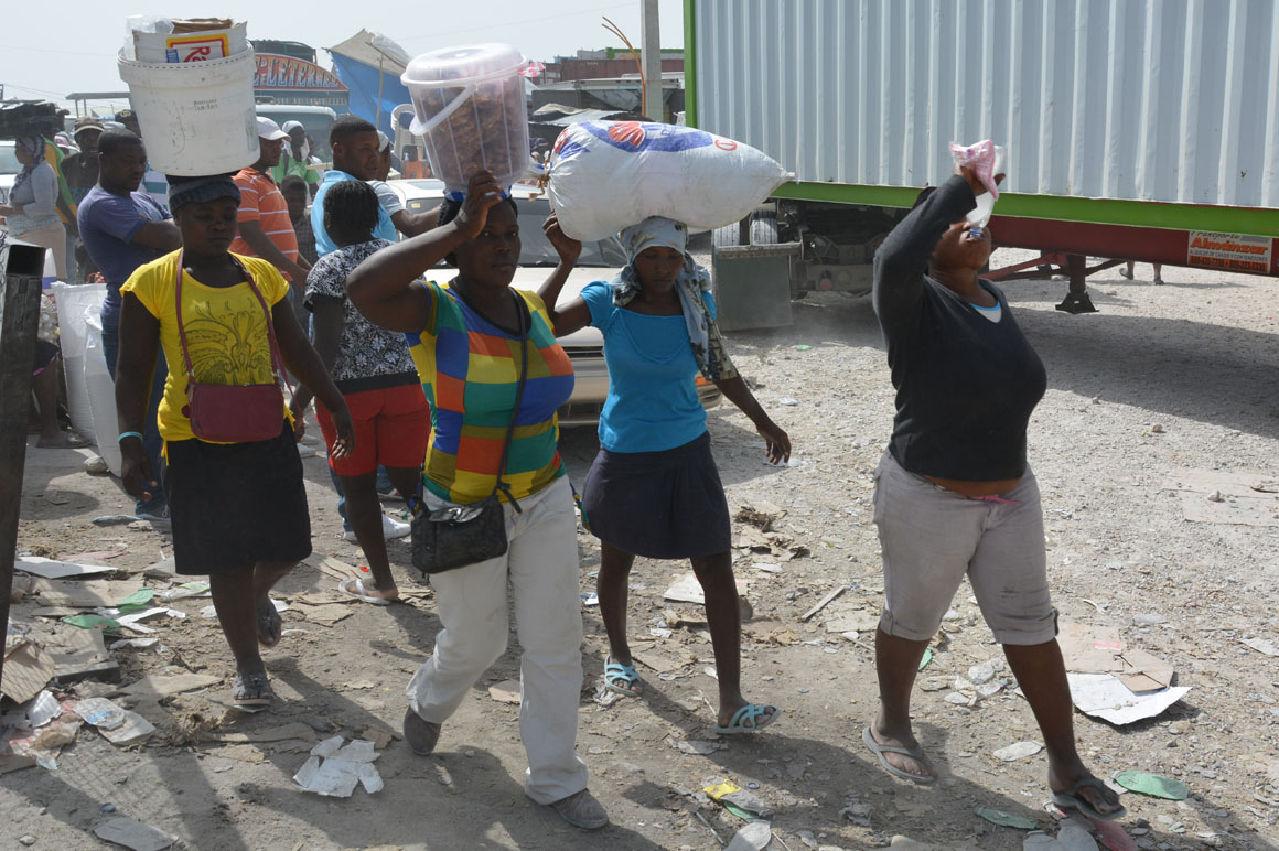 JIMANÍ, PROVINCIA INDPENDENCIA, República Dominicana.- El polvo cubre los rostros de mujeres, hombres y niños que caminan a prisa cargando sacos y cajas de cartón sobre sus cabezas o arrastrando carretillas cargadas con comestibles, vestimentas y utensilios de uso doméstico. Algunos transportan sus pertenencias auxiliados por una motocicleta que remolca los carretones.