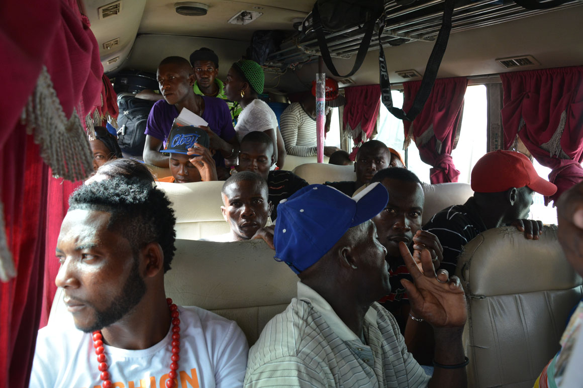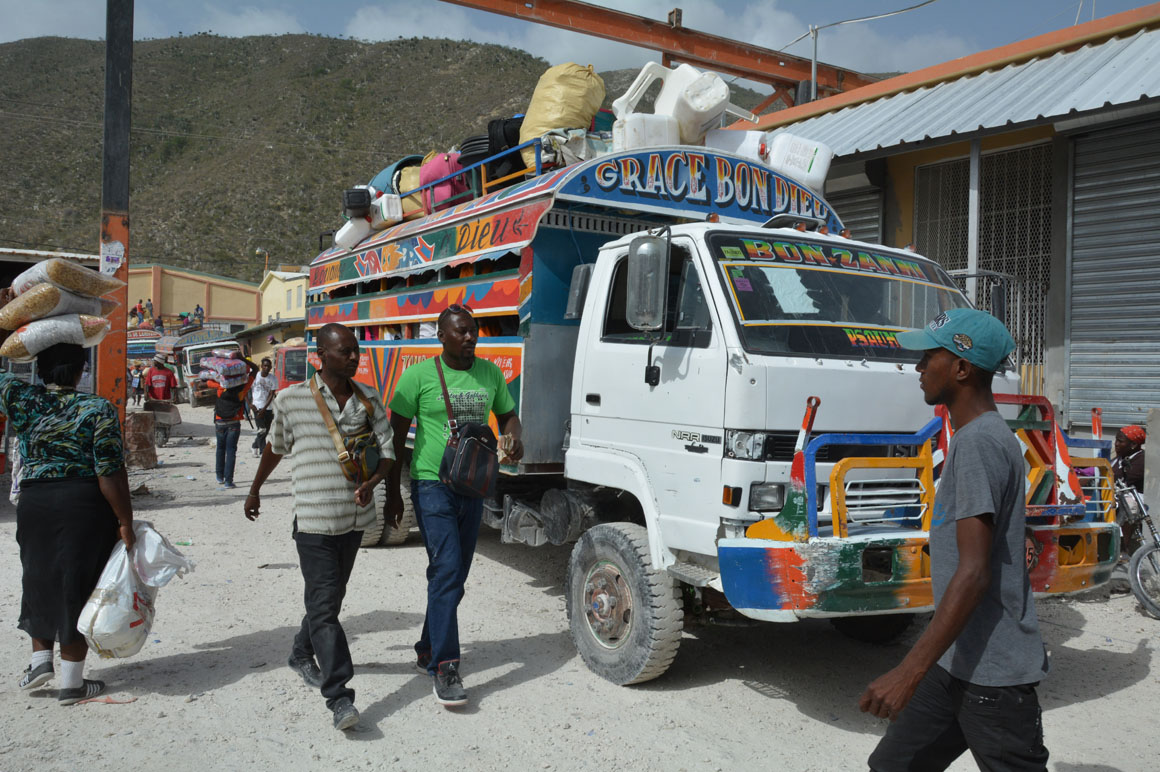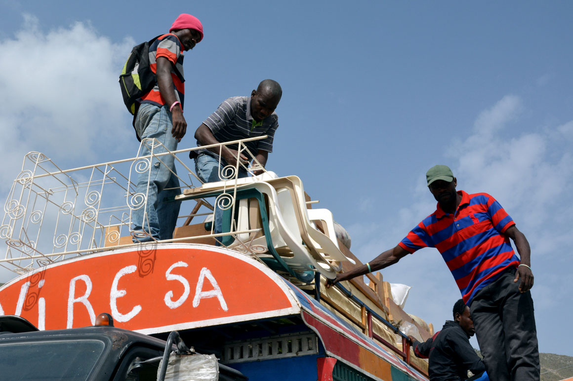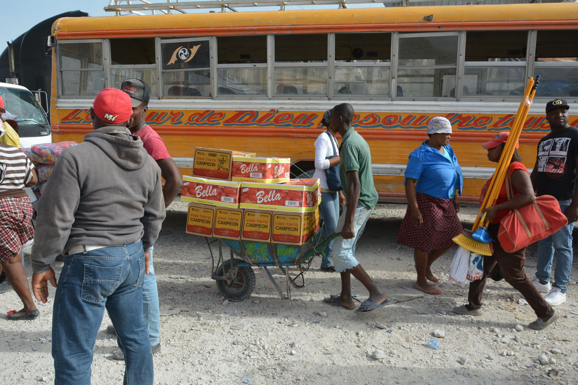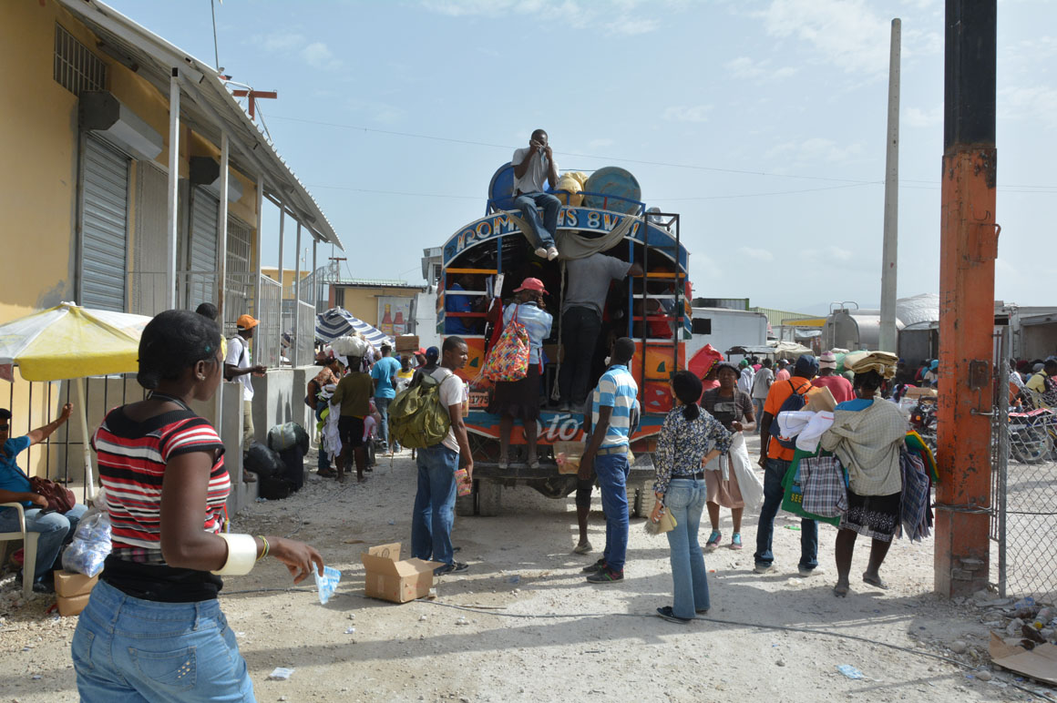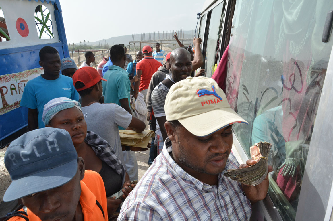 “Ahí van como 60 personas, con sus pertenencias y todos son haitianos que van para Haití”, agrega mientras señala la guagua pintada con los colores fuertes que prefieren los haitianos. El vehículo se marcha atestado de personas. Apenas hay asientos para 20 pasajeros, el resto viaja a pie, agarrándose a los tubos que descienden del techo del vehículo, en el centro.