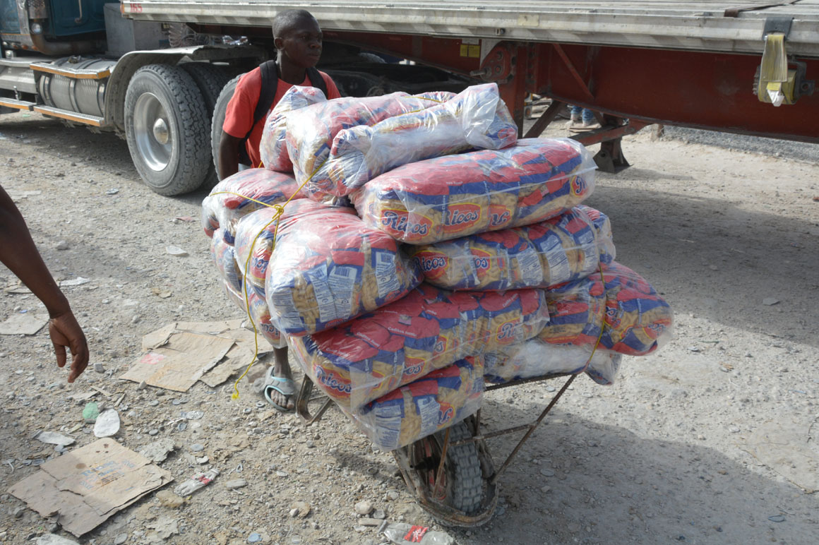 Arroz, huevos, víveres, dulces, jugos, entre otros tipos de alimentos cargan mujeres y hombres en los sacos que transportan en la calle sin pavimentar, identificada como “tierra de nadie”.