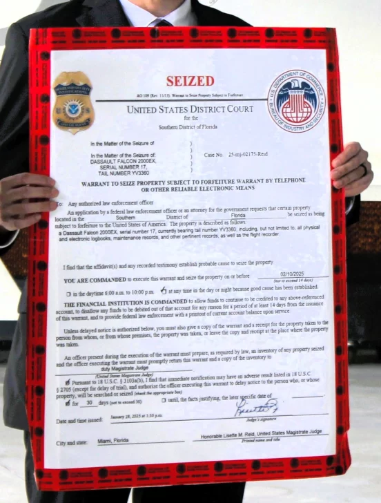 Fiscales del Distrito Sur de Florida y la División de Seguridad Nacional concluyeron que existen bases legales para iniciar un decomiso civil de la aeronave por violaciones a sanciones, controles de exportación y lavado de dinero.