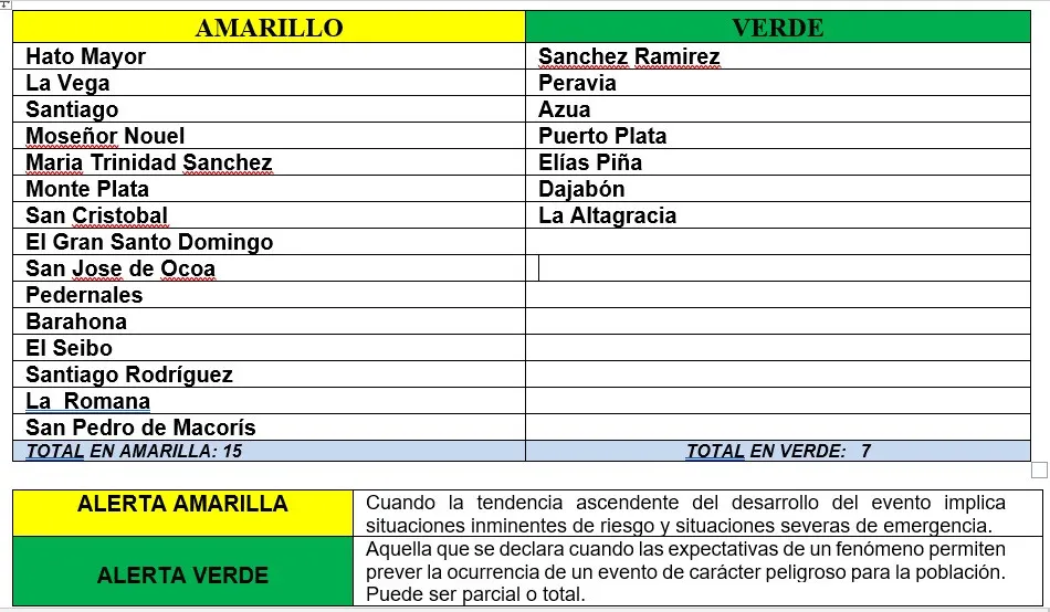 El organismo de asistencia y socorro emitió una denominada "ampliación de alerta" y dijo que actuó en base al boletín meteorológico de la Oficina Nacional de Meteorología (ONAMET) que informa que se mantiene el ambiente con bastante inestabilidad debido a la presencia de vaguadas y al transporte de abundante humedad generada por el viento húmedo del sureste.