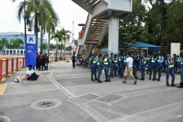 La Policía Nacional fue la primera en llegar a la estación Juan Bosch del Metro de Santo Domingo, donde se concentrará la marcha convocada por el Movimiento Justicia Jet Set, a partir de la 1pm.