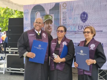 La Universidad Autónoma de Santo Domingo (UASD) —institución que en 1965 fue epicentro de la resistencia constitucionalista— encabezó la jornada con su ceremonia de investidura en la Plaza Héroes de Abril, espacio que lleva el nombre de quienes dieron la vida por la democracia y que este viernes volvió a llenarse de togas y birretes.