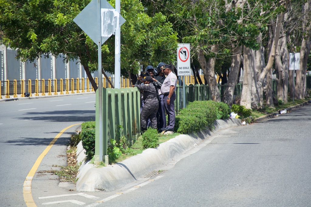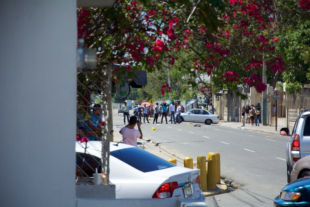 La protesta inició a tempranas horas de la mañana, cuando empleados, maestros y estudiantes intentaron marchar con dirección al Palacio Nacional, para reclamar que sea destinado el 5 por ciento del presupuesto nacional para la UASD.