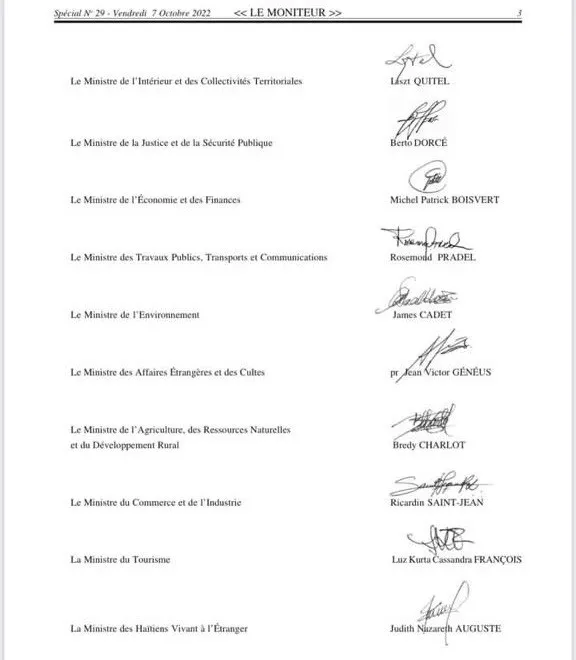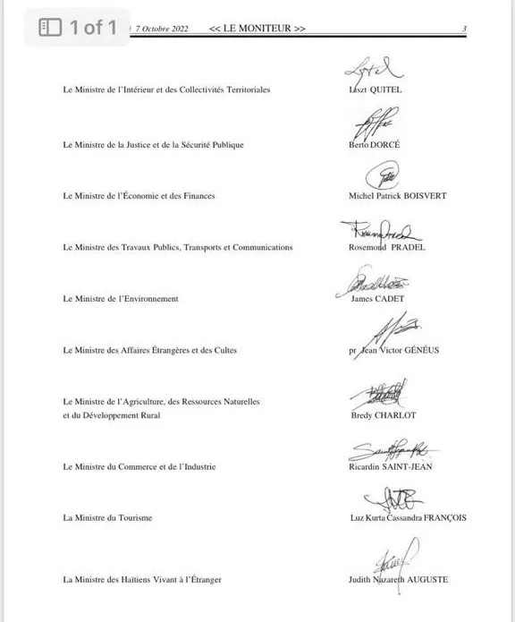 Dado en el Palacio Nacional, en Port-au-Prince, el jueves 6 de octubre de 2022, año 219 de la Independencia.