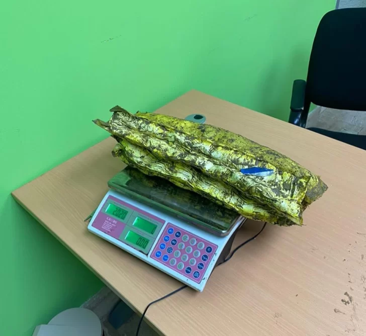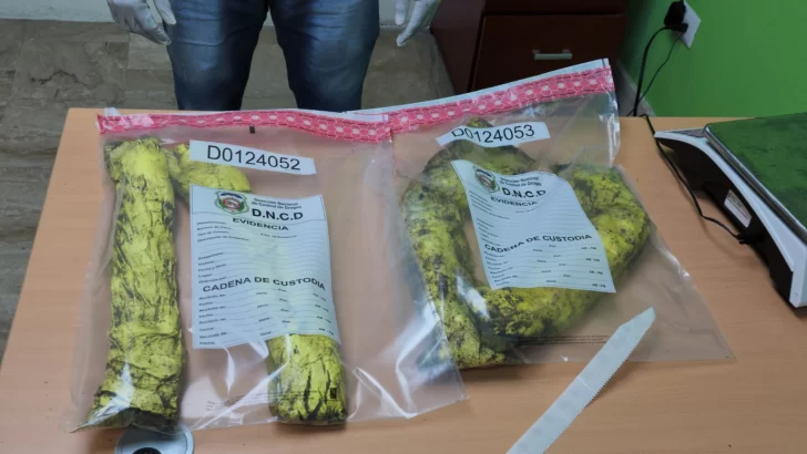Iniciado el protocolo de actuación y en presencia del Ministerio Público, se procedió a verificar las llantas y le fue hallado en el interior de ambas gomas, cuatro paquetes de la sustancia, con un peso aproximado de 2.2 kilogramos.