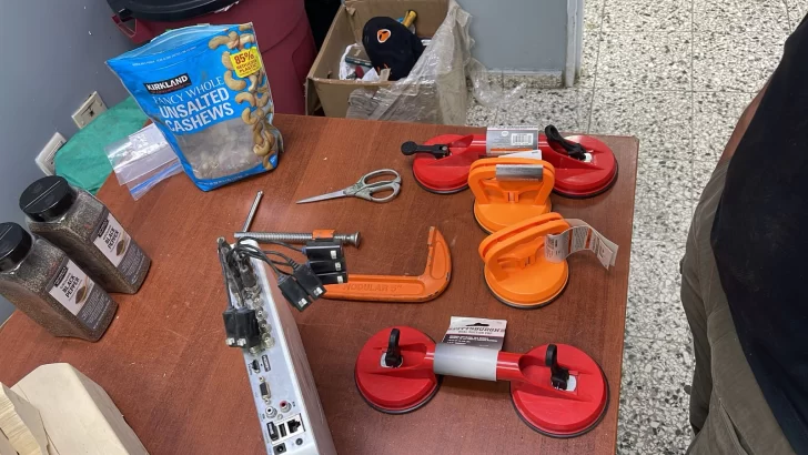 Durante el operativo, se encontró además, un yipeta Honda, un carro Hyundai Sonata, cuatro taladros, una pulidora, una máquina de cortar, un martillo, un juego de mechas para taladros, cintas adhesivas, tijeras, once pedazos de madera, un cargador calibre nueve milímetros, entre otras evidencias.